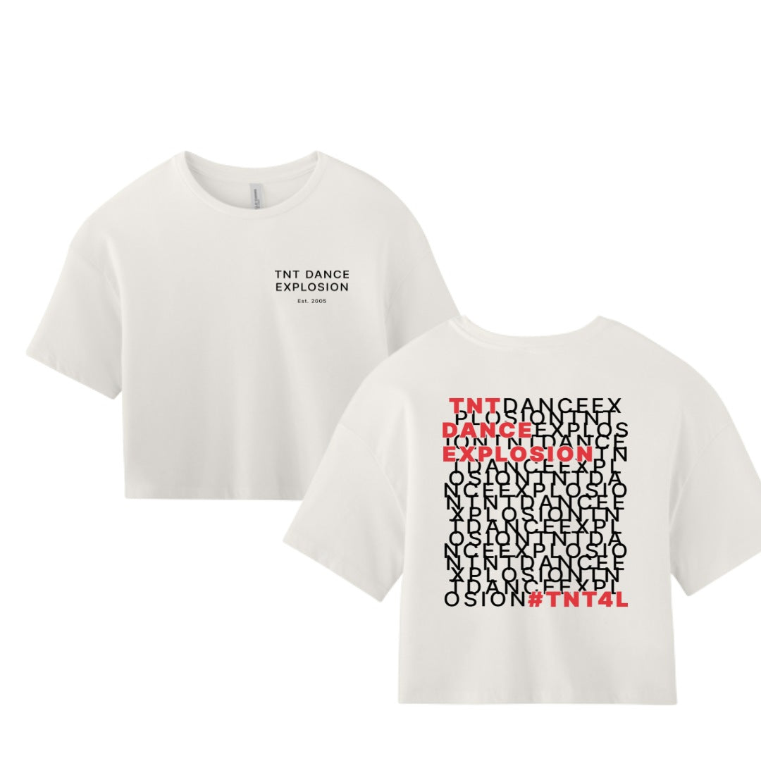 Bold, confident, and made to move. This cropped tee features the TNT Dance Explosion logo printed on the front and the Dance Explosion Design on the back— a modern fit that pairs comfort with team pride. Soft and lightweight with a flattering cut, it’s perfect for rehearsals, showcases, or everyday wear that celebrates the TNT spirit.